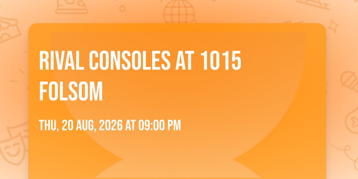 π Welcome to Rival Consoles at 1015 Folsom, where the impossible becomes possible and dreams take flight! ποΈ Join us at 1015 Folsom in the heart of San Francisco, CA for an event that will redefine your expectations. π On August 20th, 2026 at 09:00 PM, witness the transformation of space and time into something truly magical. β¨ It's a curated experience combining the best of innovation, entertainment, and community spirit, creating moments that will be remembered for years to come. Whether you're a first-time visitor or a seasoned enthusiast, prepare to be amazed. π Book now to ensure your place in this unforgettable experience!