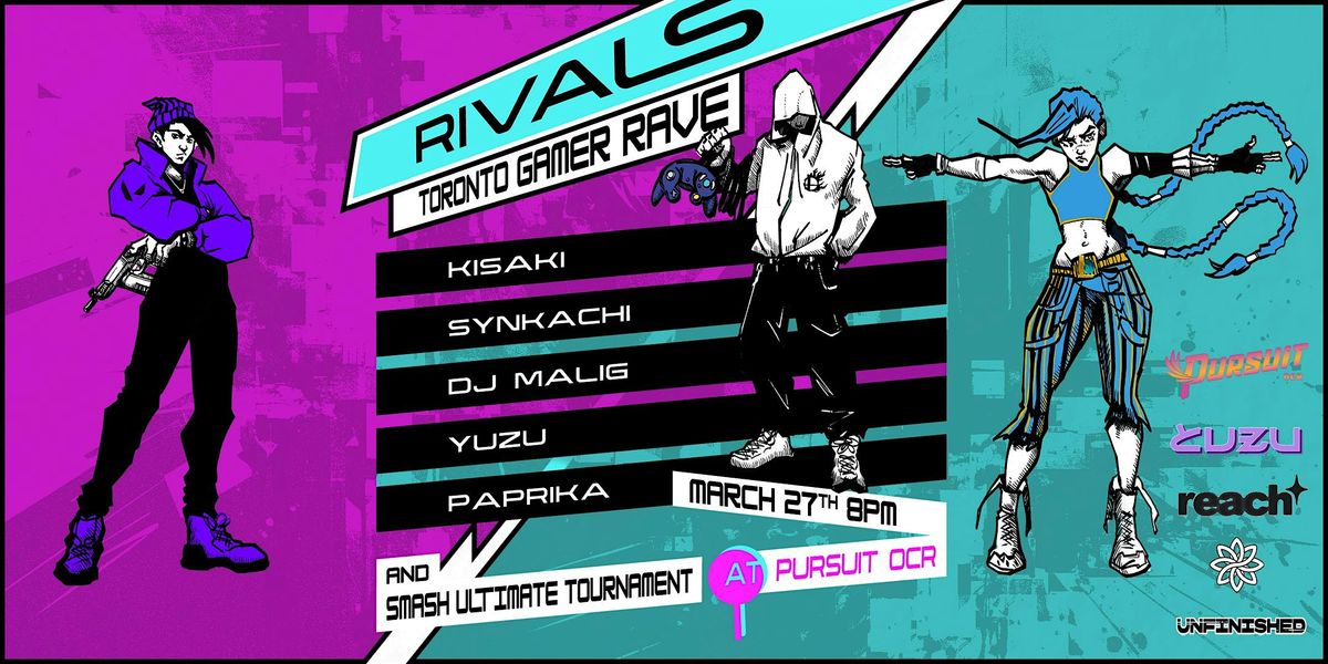 RIVALS is the crossover event built for GAMERS and RAVERS! We're transforming Pursuit OCR into a massive multi-genre rave where gamers can find their rivals and battle to win prizes Feeling competitive? Jump on the Smash Bros setups, compete against your rivals in tournaments, and secure the grand prize!