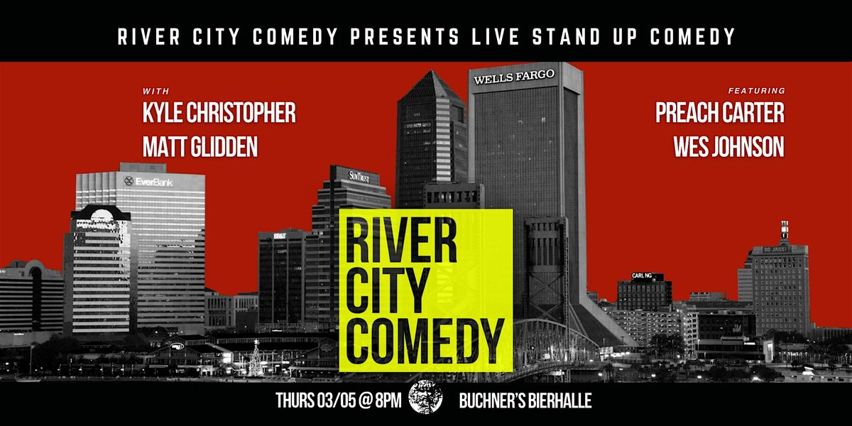 Welcome to River City Comedy at Buchner's Bierhalle! Get ready for a night filled with laughter on March 5 at 8:00 PM. Join us for a hilarious lineup of comedians guaranteed to make you laugh until your sides hurt. Don't miss out on this unforgettable evening at Buchner's Bierhalle - the perfect spot for a night of comedy and fun!