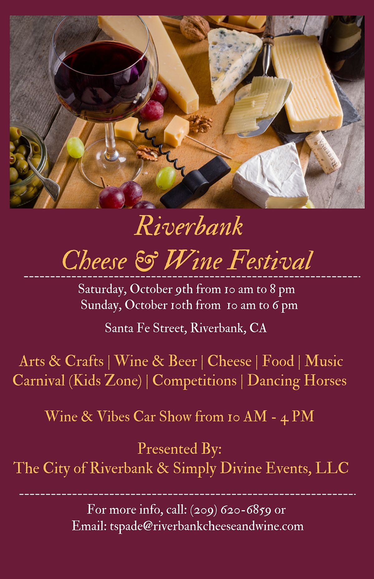 What are you doing on October 9th & 10th? Join us for the 44th Riverbank Cheese & Wine tasting. There are three different session to sign up for daily. If tickets are sold out, please contact [email protected]