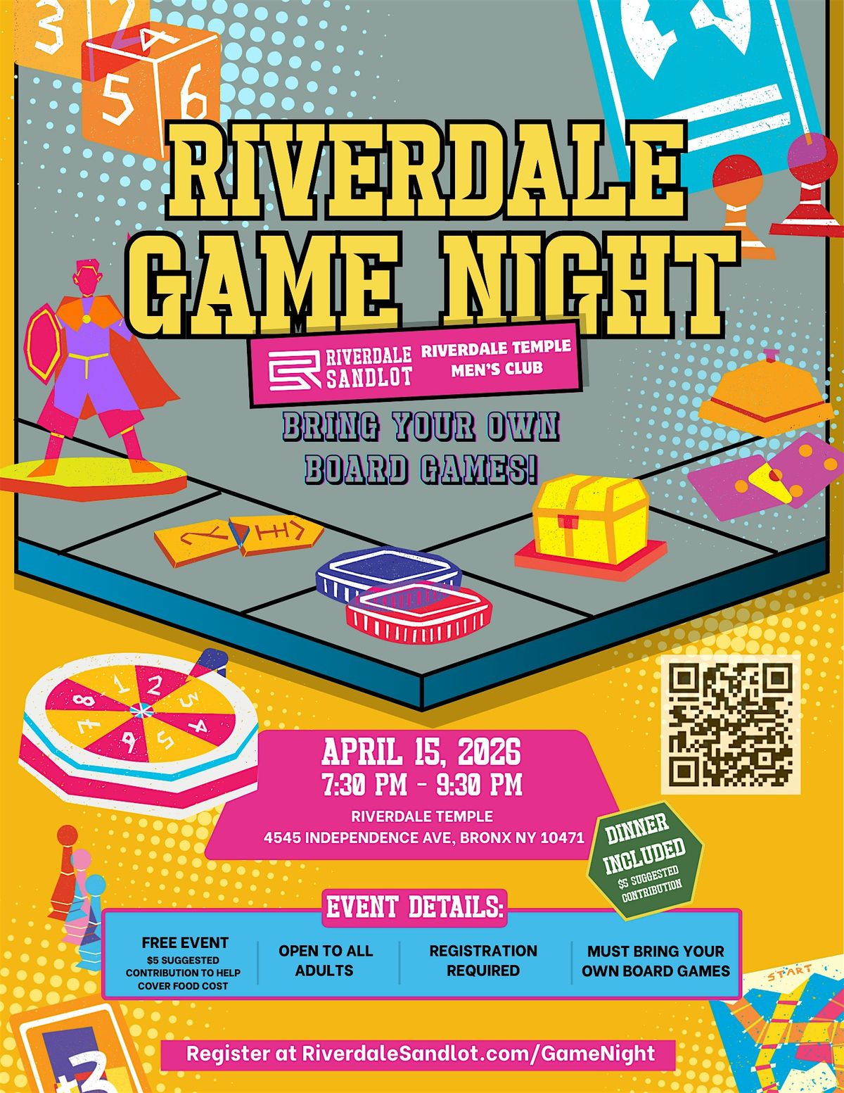 Riverdale Sandlot and the Riverdale Temple Men’s Club are teaming up for a night of strategy, luck, and community. Whether you’re a hardcore tabletop gamer or just looking for a fun night out, come grab a seat at the table.