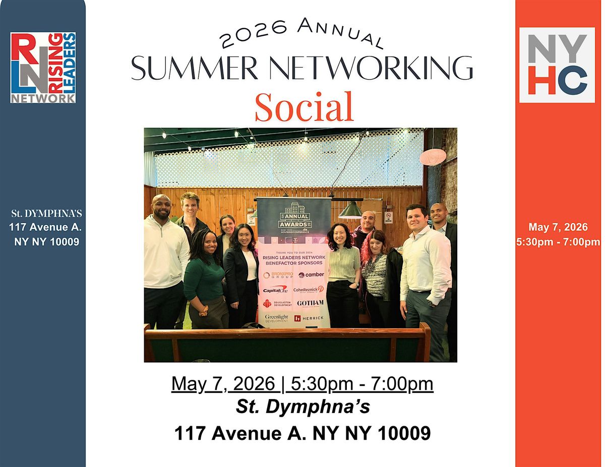 Kick off summer with the Rising Leaders Network at St. Dymphna's on May 7th, at 5:30PM! Join other likeminded affordable housing professionals for an evening of conversation and drinks at St. Dymphna's in the East Village.