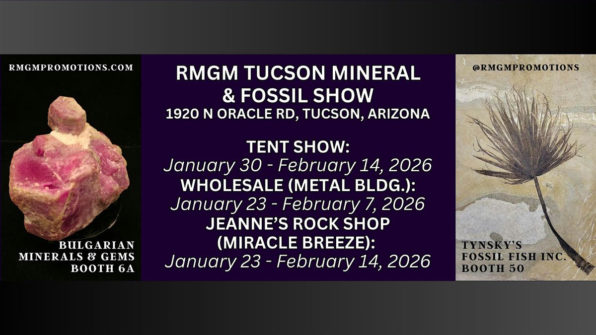Get an early start on the Tucson show season at the RMGM Tucson Mineral & Fossil Tent Show, a multi-week event featuring wholesale and retail mineral, fossil, and gemstone dealers under one large, easy-to-shop tent.