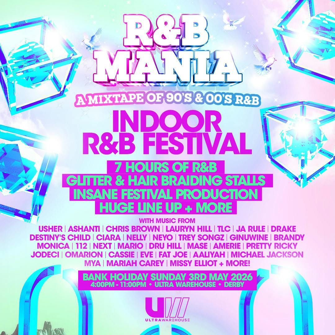 RNB MANIA FESTIVAL FINALLY COMES TO DERBY THIS BANK HOLIDAY SUNDAY! 💜Ultra Warehouse, Derby • Bank Holiday Sunday, 3rd May 2026