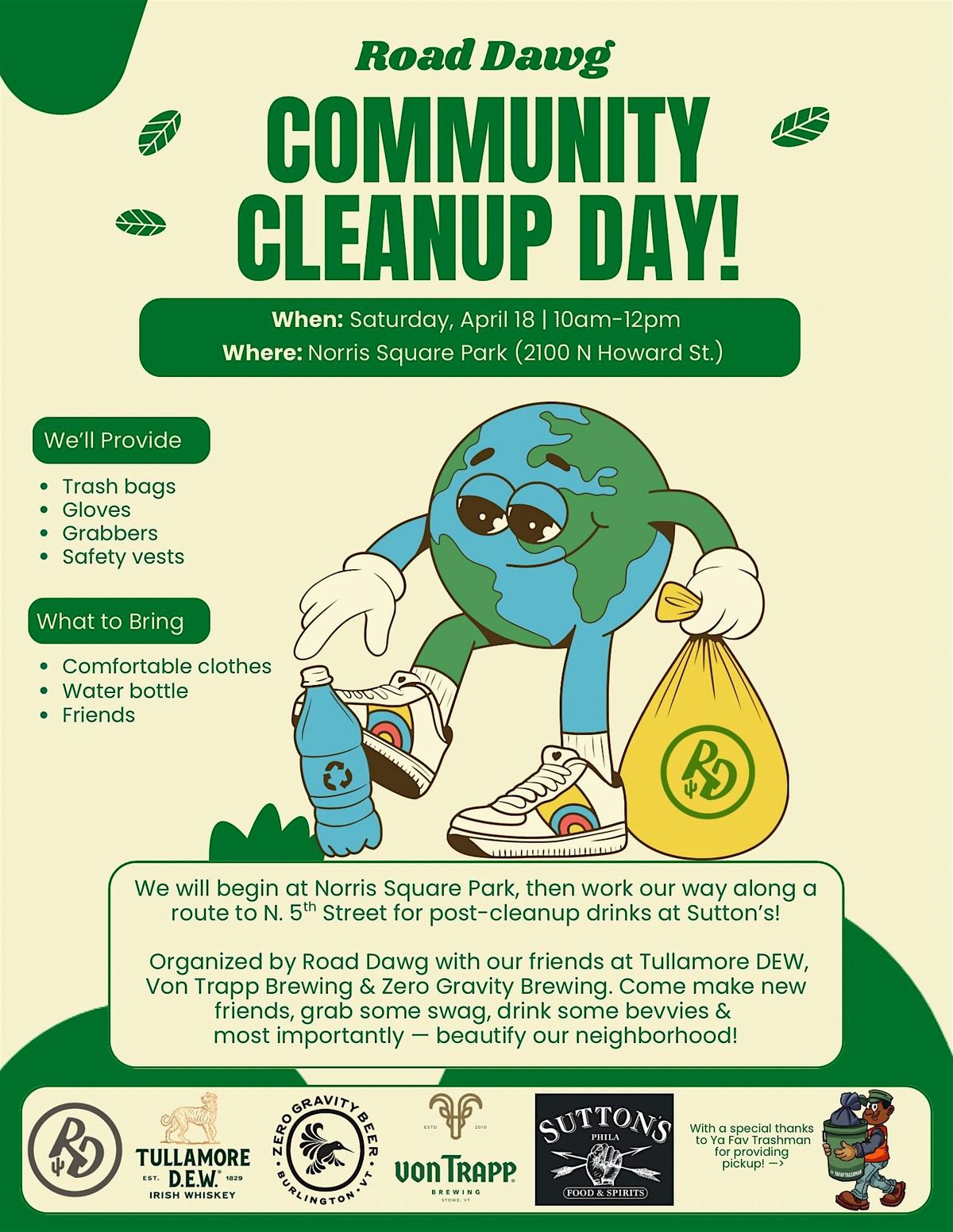 We will be starting in Norris Square Park at 10am — look for our tent as a meeting point. From there we will clean up a portion of the park, then make our way to N 5th St., cleaning along the way. We will finish up between 12 and 1pm, when we arrive at Sutton’s for post drinks. Join us if you wish for a well-deserved beverage!