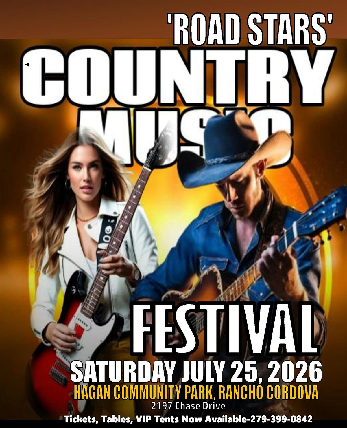 All roads are leading to the Road Stars Country Music Festival at beautiful Hagan Park in Rancho Cordova for a full day of country music from top entertainers and the rising stars of country music. Come out and enjoy the sounds of country western theme as you dance, eat drink and have fun under the sun. The Road Stars CMF will feature over a dozen acts on the main stage at Hagan Park and a few more non the lakeside stage to have the biggest country music festival ever held in Rancho Cordova. Everyone is invited to come out to the event as we will have activities for the kids and adults. There will be food; the Chili-Cook Off and Big Boss BBQ Contest. Our Saloon is a dance party all day for line dancing and lessons; then take part in the karaoke show so you can perform your own greatest hits. This how you enjoy a day in the park on grass for music, food and fun. Get your own VIP bungalow and reserve your own VIP table today.