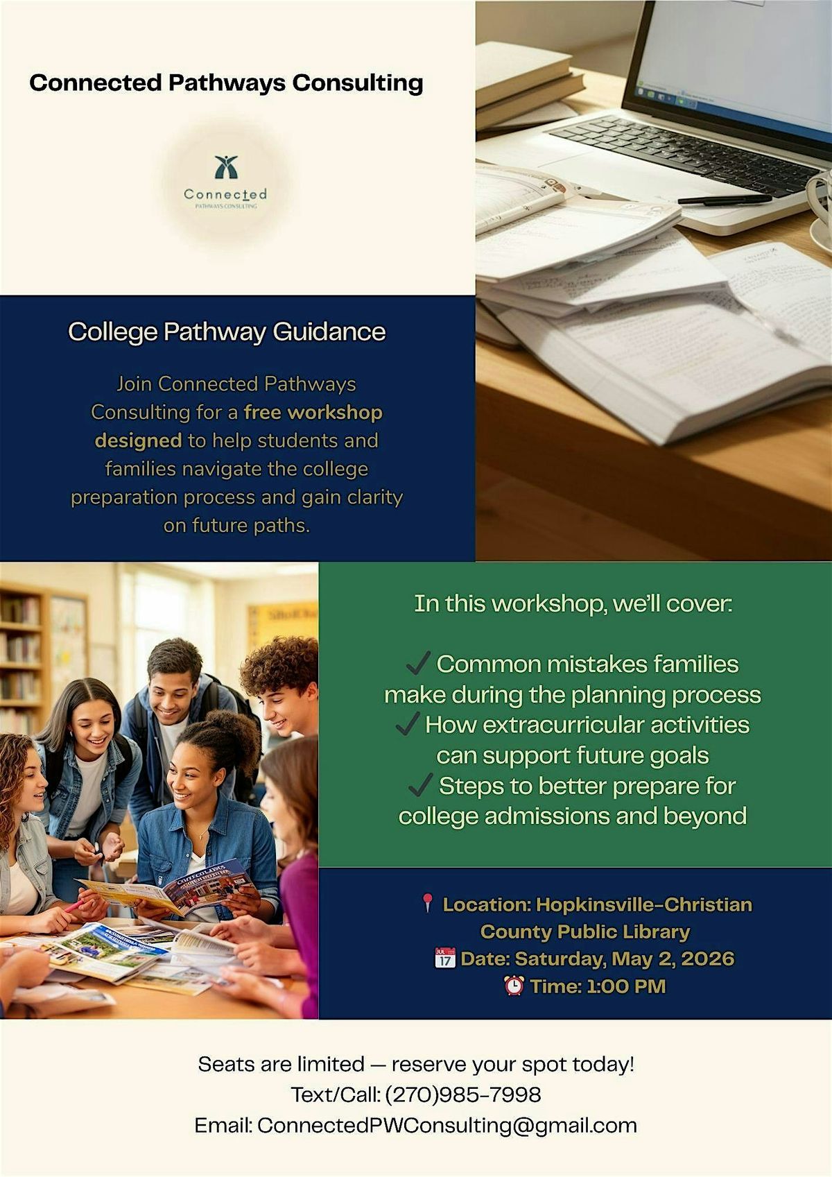 Join us for an exciting workshop designed to help families navigate the college and career planning journey together! Whether you're just starting to explore options or looking for tips on staying on track, this event is packed with helpful insights and practical advice. Get ready to ask questions, learn some cool strategies, and feel more confident about the road ahead!