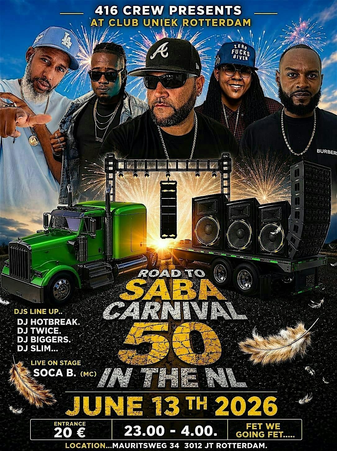 Join us in person as we celebrate 50 years of Saba Carnival! Expect a night full of energy, great music, and unforgettable vibes. We’re bringing the spirit of Saba straight to you — all you need to bring is your crew, your dancing shoes, and the right energy. Let’s celebrate the past and turn up for what’s next.