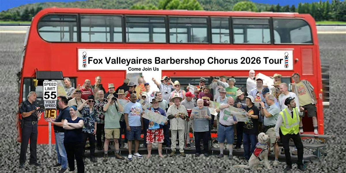 Join us as we take a virtual tour across the country in our 82nd annual barbershop show: "Road Trip: Are We There Yet?" The show features songs about lots of fun places in the USA in a cappella harmony sung by the chorus and our chapter quartets, as well as the 2006 International Champion quartet Vocal Spectrum celebrating 20 years as international champions! The show is on Saturday, April 25, 2026 at 3:00pm at Xavier Fine Arts Theatre in Appleton. One show only: Don't miss the bus!
