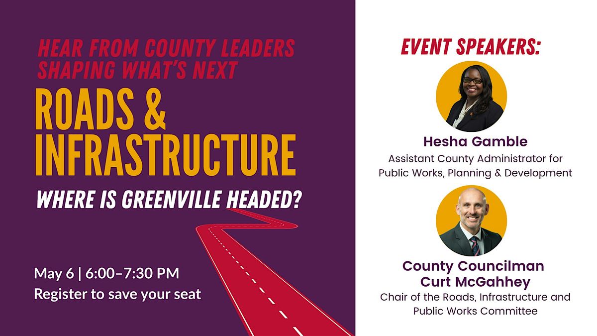 Road and infrastructure building and maintanance is the hottest topic in Greenville. Hear from the people who guide those decisions for Greenville County about how roads are planned, funded, maintained. What are the challenges and what can we expect in the next budget cycle?