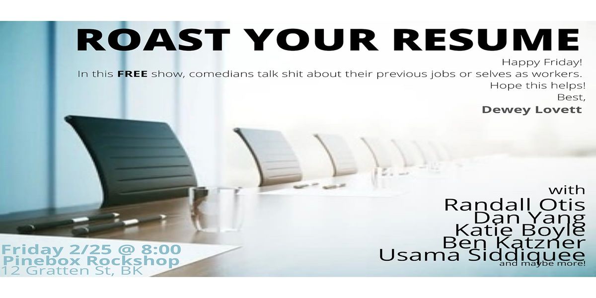 A stand up comedy show where comedians roast their resumes, their previous jobs, themselves as workers doing what it takes to survive in New York.