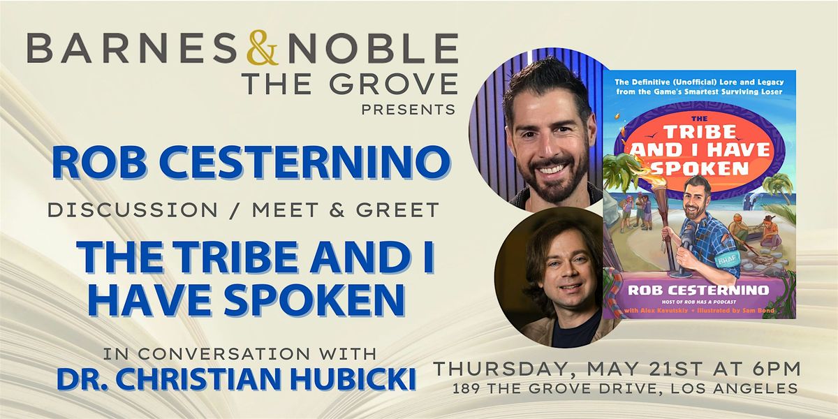 Join on May 21, 2026, at 6:00pm as we welcome Survivor contenstant and host of Rob Has a Podcast to discuss and sign his book, . After playing in Survivor: The Amazon and All-Stars, Rob built a community amongst Survivor’s online fans with Rob Has a Podcast. Now, this foremost scholar of the show takes readers from the beaches of Borneo on the first season all the way to the landmark fiftieth season. This cleverly illustrated ode to the show includes “The Heroes and Villains Hall of Fame,” the greatest “Watercooler Watershed Moments” in the show’s history, and Rob’s “Ultimate Survivor Playbook” (no refunds) to winning that million-dollar prize.