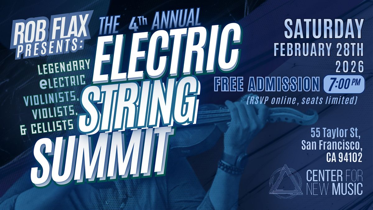 The Fourth Annual Electric String Summit features an all-star lineup of the best electric violinists, violists, and cellists from all over the country, many of whom will be in San Francisco for the annual American String Teachers Association (ASTA) Conference, as well as local legends and innovative musicians and composers based here in Northern California. Past performers in the Electric String Summit have included multiple Grammy winners, celebrated solo artists (whom have had concertos written for them), members of iconic groups like the Turtle Island String Quartet and Kansas... and have performed with a “who’s who” of iconic superstars, from Whitney Houston to Robert Plant to Jacob Collier, and many more!