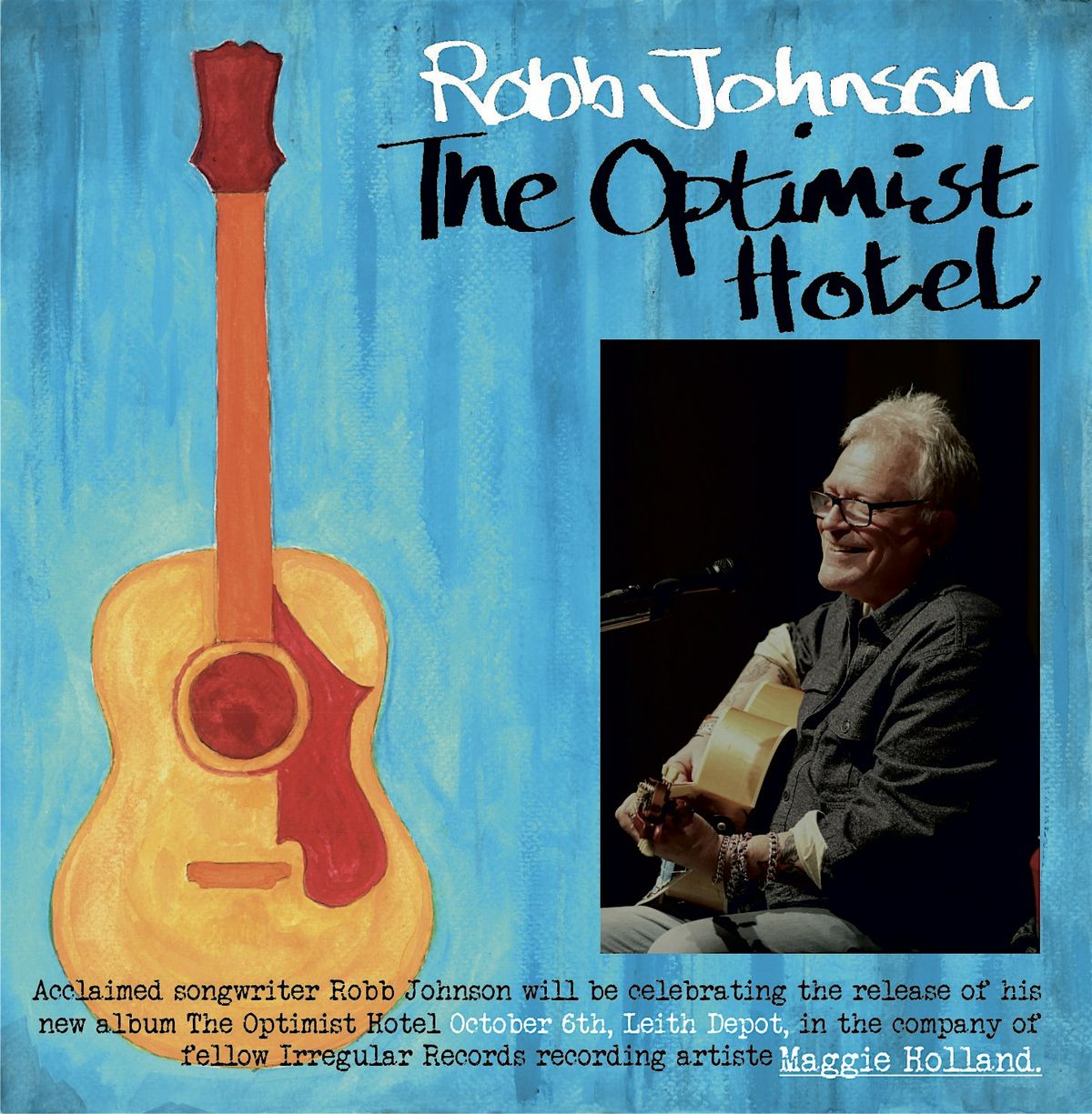 This autumn sees the release of Robb’s latest album The Optimist Hotel. The songs on the album “are all linked by hopefulness,” says Robb. “Not everybody lives happily ever after in them, but these songs are about people who are hopeful, & who refuse to relinquish that hope.”