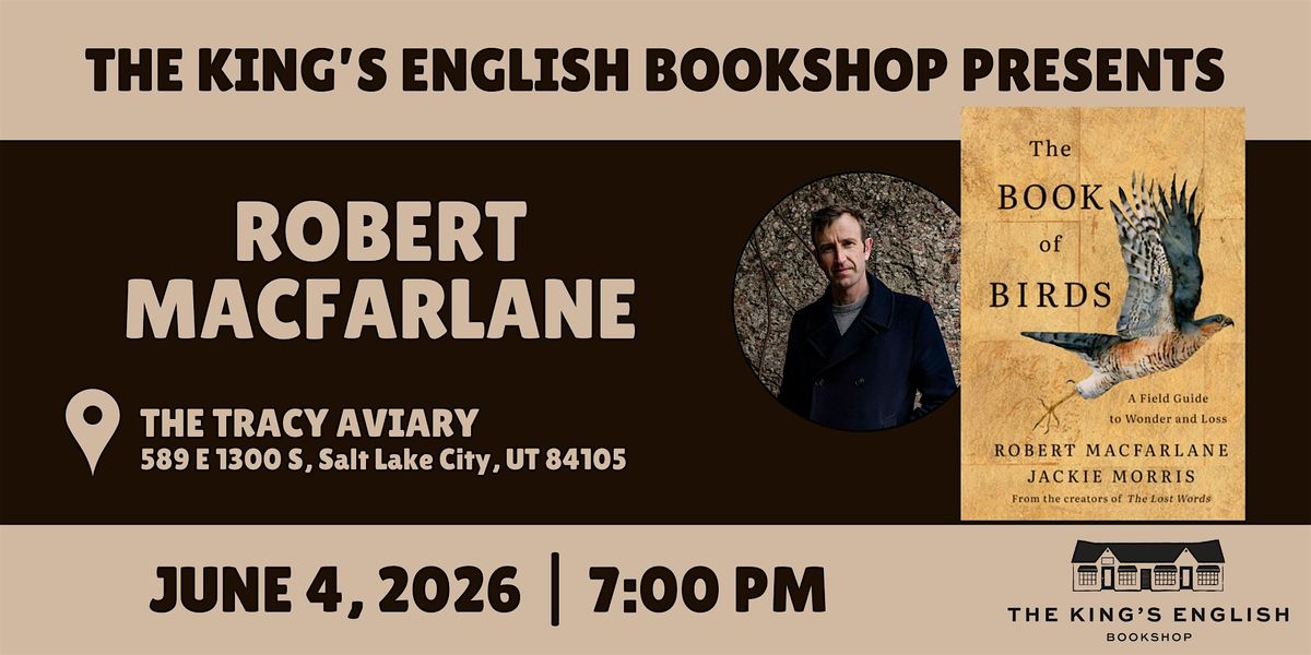 The King's English is thrilled to welcome, Robert Macfarlane to Utah to celebrate his new book, The Book of Birds: A Field Guide to Wonder and Loss. Robert will be in conversation with Tim Brown, the President and CEO of the Tracy Aviary.
