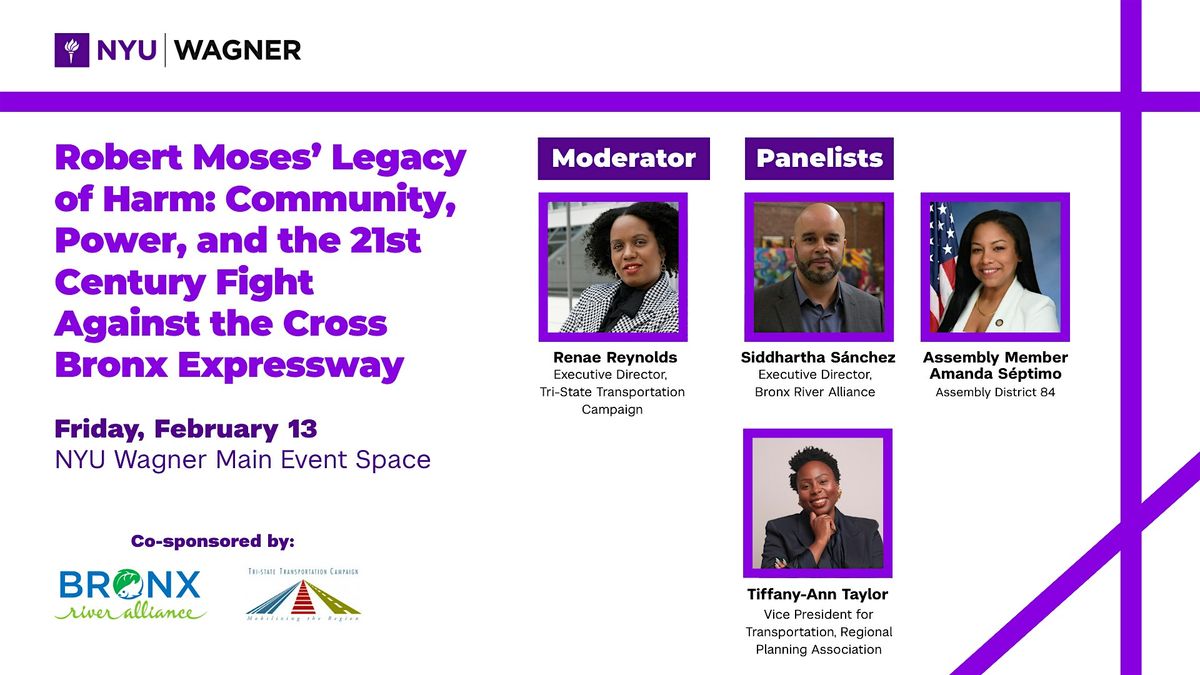 Please join us for a convening on the work of the Bronx River Alliance and the Stop the Cross Bronx Expansion coalition, highlighting their recent win as the state rolled back plans for a “traffic diversion structure.” Panelists will go behind the scenes of the campaign and explore how community power, storytelling, and data-driven advocacy challenged racist urban planning. The conversation will highlight lessons for advancing public health, environmental, and transit equity.