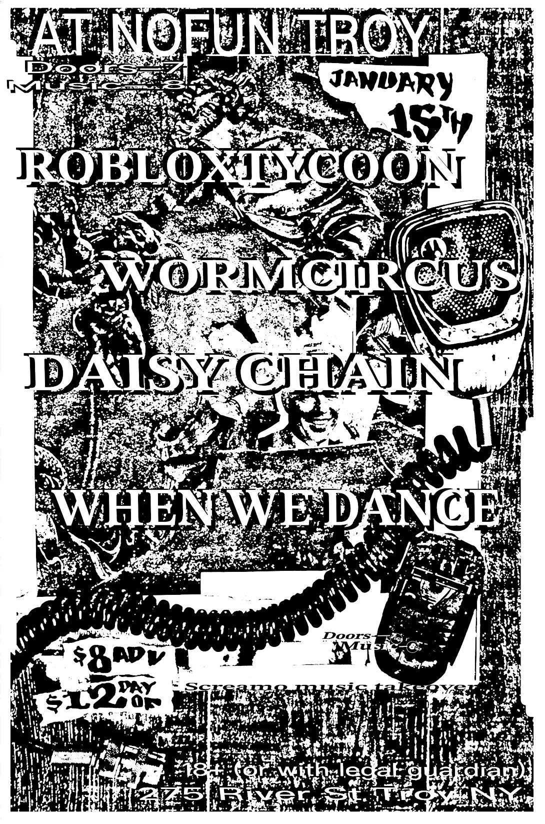 On Thursday January 15th, Roblox Tycoon, Worm Circus, When We Dance,and Daisy Chain play No Fun in Troy, NY!