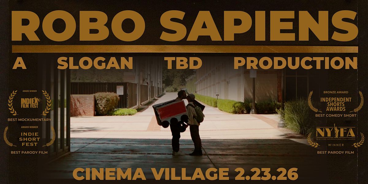 Slogan TBD Productions' first film FAIRVIEW (streaming now on Apple TV, 32 festivals, 19 awards, "the political satire we need" - Film Daily) took on a city council election in a purple district. Our second film ROBO SAPIENS takes on autonomous delivery robots, in our same signature run-and-gun style. Winner of 4 awards for Best Comedy, Best Mockumentary, and Best Parody Film (2x)—and our festival run has only just begun!