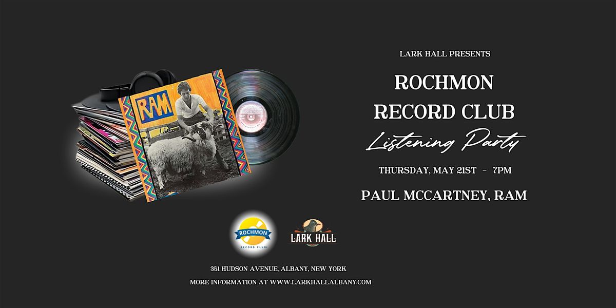 On Thursday, May 21, Rochmon Record Club will converge at Lark Hall, 351 Hudson Ave, Albany to listen toand learn about Paul & Linda McCartney’s – “Ram”. Doors open at 6:30, the show begins at 7 pm with a live audio & video presentation by Chuck Vosganian aka “Rochmon”.“Ram”, released in 1971, is credited to both Paul & Linda. While poorly received by the critics at the time, “Ram” went to #2 in the US, and #1 in the UK, providingMcCartney his first solo #1 single, “Uncle Albert and Admiral Halsey”. Paul was onto something, channeling the future and pointing to where music would be 52 years after “Ram’s” release. “Ram” is one of those albums that gets better with age and sounds as vital today as when it was recorded. All those reviewers have since changed their tune. Come hear why “Ram” is now considered to be one of McCartney’s best, post-Beatles records. As always Rochmon will have some surprises in store! Tickets at larkhallalbany.comA Rochmon Record Club Listening Party is meant to inform and deepen our understanding of the history of the individual performers, songs and the stories that went into the making of this classic album. By listening together, we hear the music again for the first time. Rochmon Record Club takes place on the 3rd Tuesday of the month at Caffe’ Lena in Saratoga Springs (caffelena.org), and the 3rd Thursday at Lark Hall (larkhallalbany.com) in Albany. Programming varies by location, please check websites for tickets and show information or go to rochmon.com.