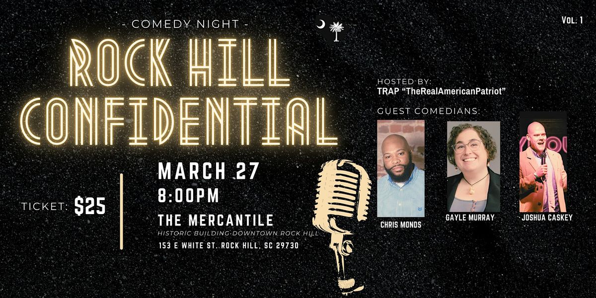 ock Hill Confidential is an intimate, high-energy stand-up comedy experience bringing together raw humor, sharp storytelling, and diverse comedic voices — all in one historic downtown venue.