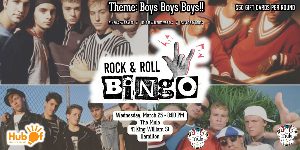 ROCK N'ROLL BINGO - Boys Boys Boys! - The Mule (Hamilton)
