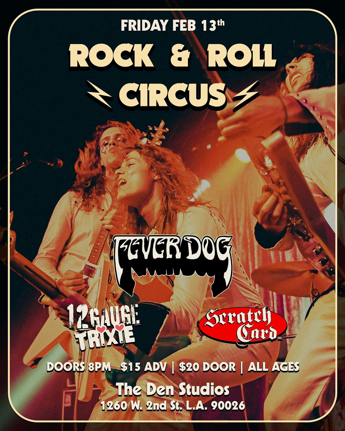 The Den Studios Presents: The Rock n Roll Circus w/ Fever Dog (Palm Springs), 12 Gauge Trixie (San Diego) & Scratchcard Inc (L.A). All Ages