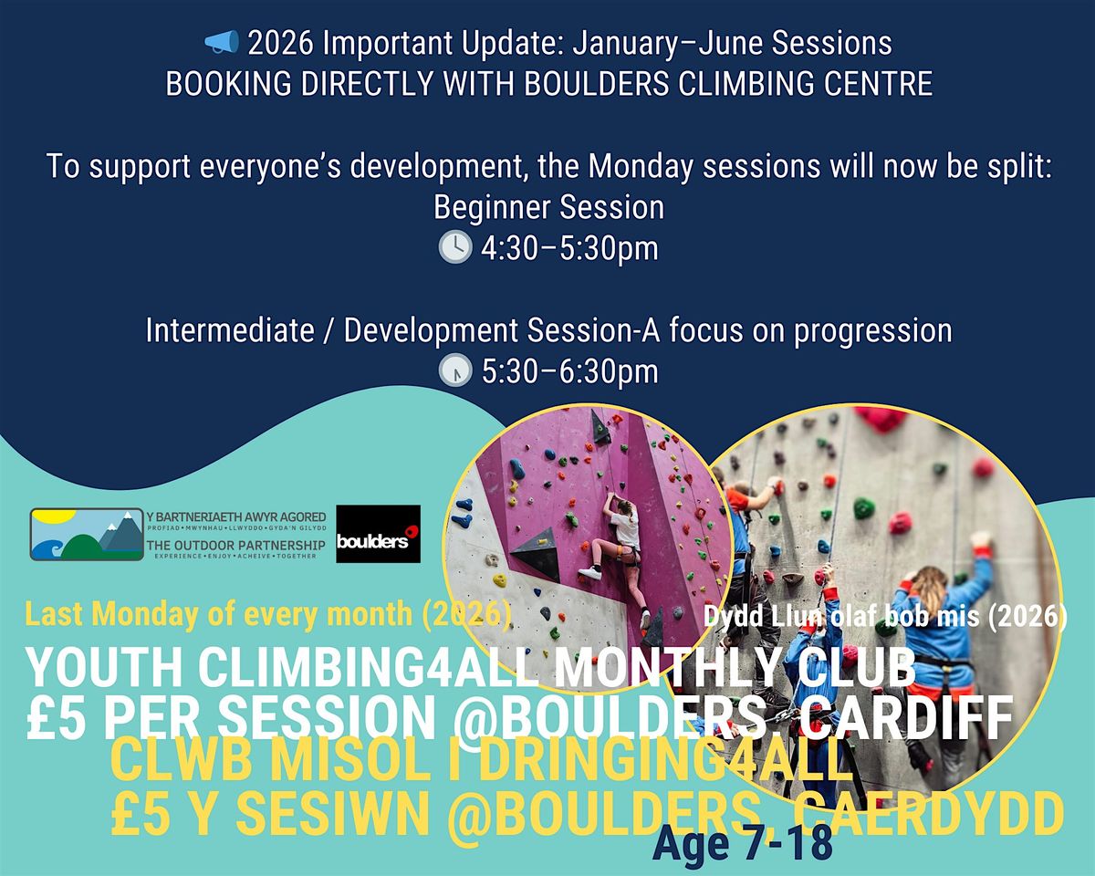 I REPEAT.....booking has now moved booking from Eventbite to the Boulders Climbing Wall booking site. SEE BELOW FOR BOOKING LINK.