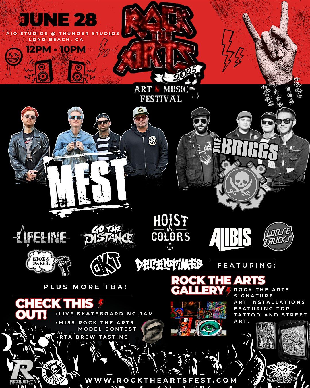 The long-anticipated return of the explosive Rock The Arts festival is returning in 2025! This unique experience will include many musical performances in the Punk and Alternative genres, including bands Mest, The Briggs, Hoist The Colors, Lifeline, Alibis, Go The Distance and many more across two stages!