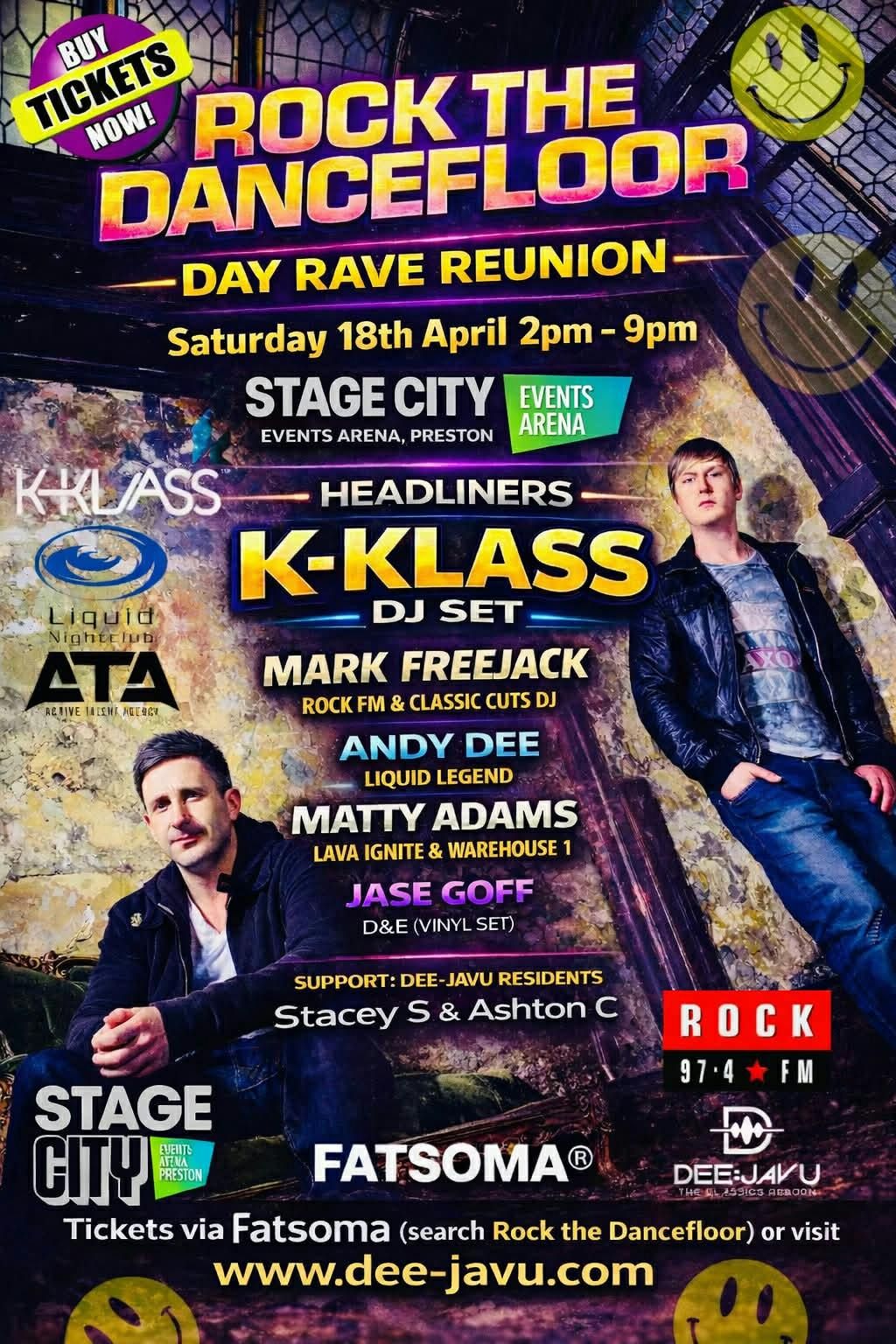 Serious sound, big atmosphere, proper crowd🎧 DJ LINE-UPStacey SAshtonDJ Jase Goff Destiny & Elite Nightclub Cheshire Oaks (exclusive vinyl set) DJ Matty AdamsWarehoue 1, Lava Ignite · Pure Wigan · Kable Nightclub Manchester, Liquid BlackburnDJ Andy DeeRueben's Nightclub Leigh . Liquid Nightclub (Wigan, Blackburn, Hanley) · Mr Smiths Warrington · Destiny & Elite Cheshire Oaks · Rumes · The Majestic Nightclub (Caernarfon Wales ) · Mobys Nightclub (Lloret de Mar, Spain) DJ Mark FreejackRock FM Classic Cuts Legend · Tokyo Jo’s · Gamebird · Quadrant Park (Liverpool) ·Angels Burnley · Liquid Nightclubs · Sequins · Reminisce Festival
