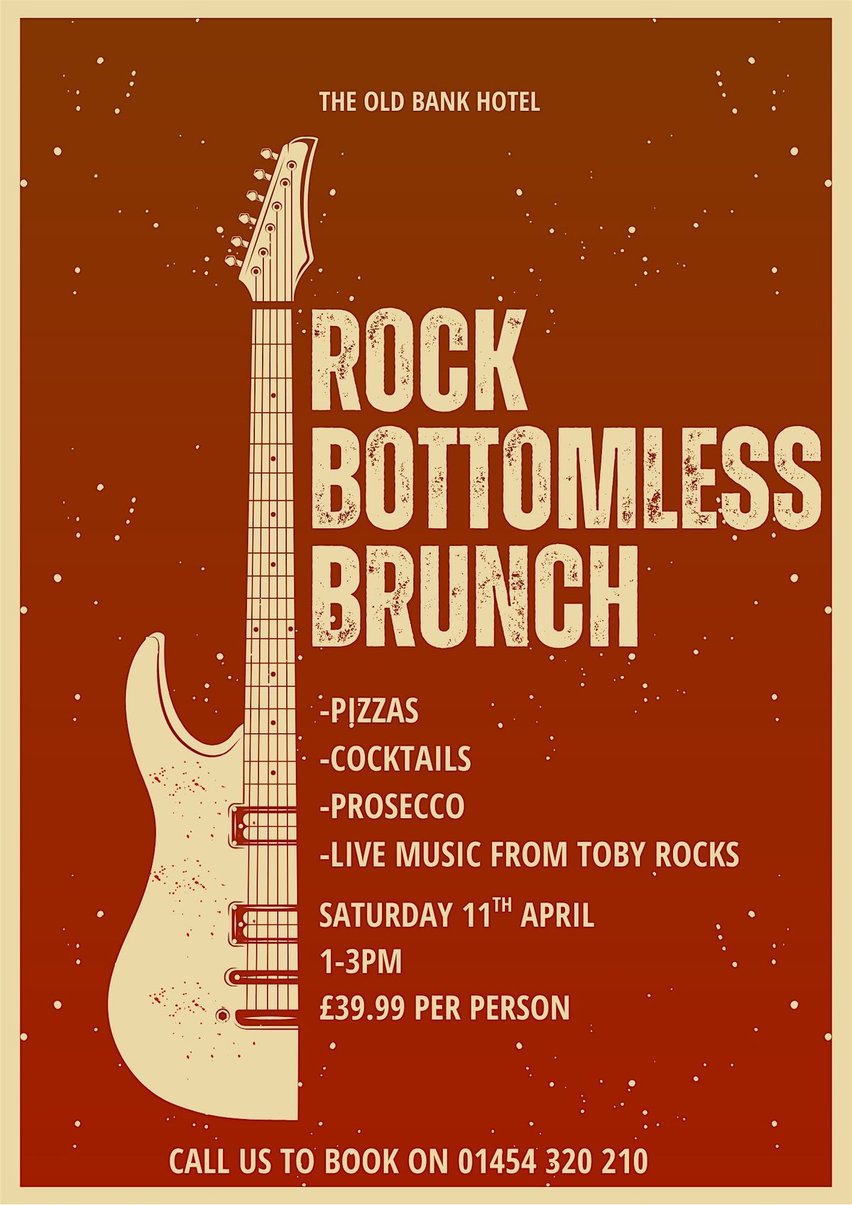 Ready to rock your taste buds and roll into the weekend?The Old Bank Hotel is turning up the volume with our Rock Bottomless Brunch on Saturday 11th April, 1–3PM — and it’s going to be off the charts! Pizzas that’ll shred your hunger Cocktails that hit all the right notes Prosecco that pours like a power ballad Live music from Toby Rocks — he’s got riffs that’ll make your brunch bounce!All this for just £39.99 per person — it’s a smashing deal!