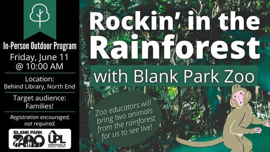 Join us to discover “What is a rainforest?” and what makes them so special. Zoo experts will educate us AND bring two animals from the rainforest for us to see live and in living color!