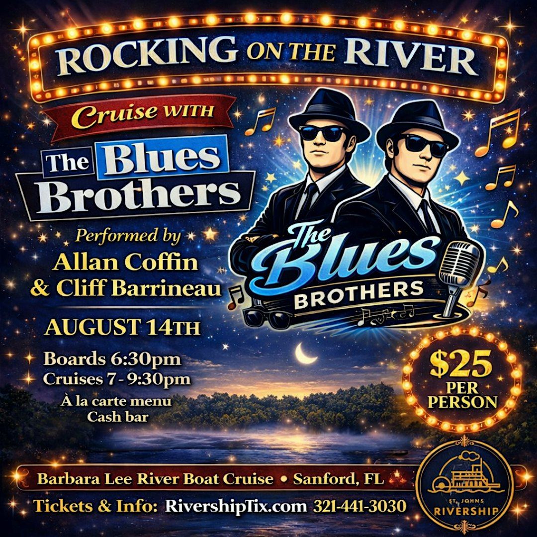 Join us Friday, August 14, 2026, for a night of unforgettable music, great vibes, and scenic cruising along the beautiful St. Johns River and Lake Monroe. From “Soul Man” to “Sweet Home Chicago,” you’ll be singing along to all your favorite Blues Brothers hits as the river comes alive around you.