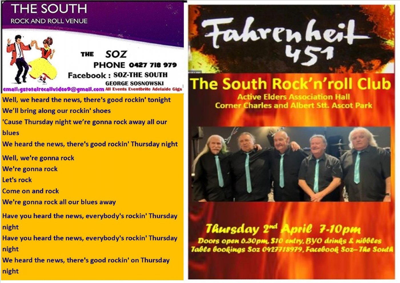 FAHRENHEIT 451 will rock the joint 7.00-10.00 pm