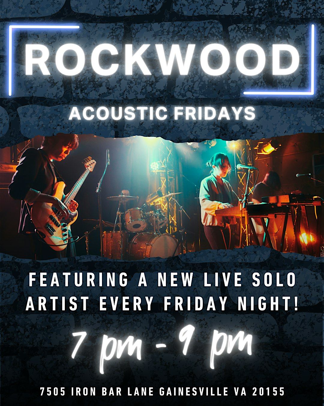 Unwind every Friday at Rockwood! Live local acoustic artists take the stage for a relaxed night of great music, drinks, and cozy vibes.