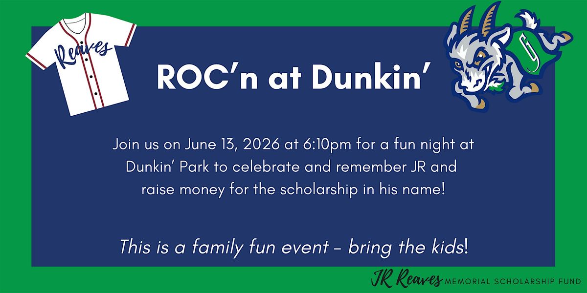 Come join us for a fun-filled evening at Dunkin' Park to support the JR Reaves Memorial Fund! This event is all about celebrating JR's life and legacy while enjoying some baseball fun ballpark treats. So, mark your calendars and get ready to ROC'n at Dunkin' with us!