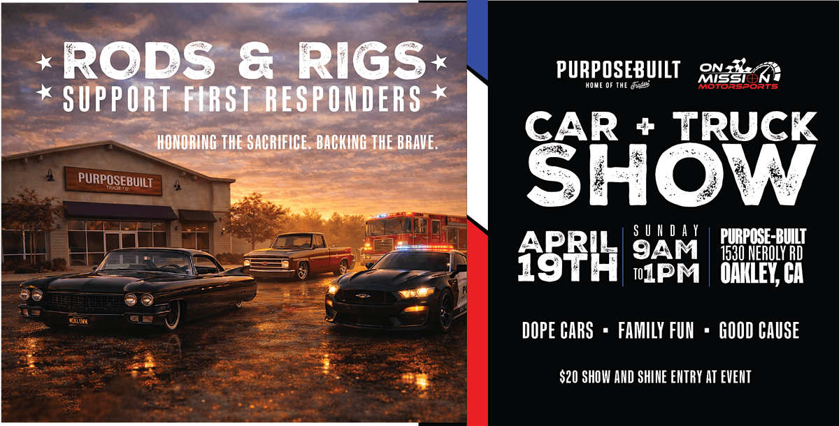 Be at Purpose-Built Oakley on April 19th for a Car & Truck Show Supporting Local First Responders.