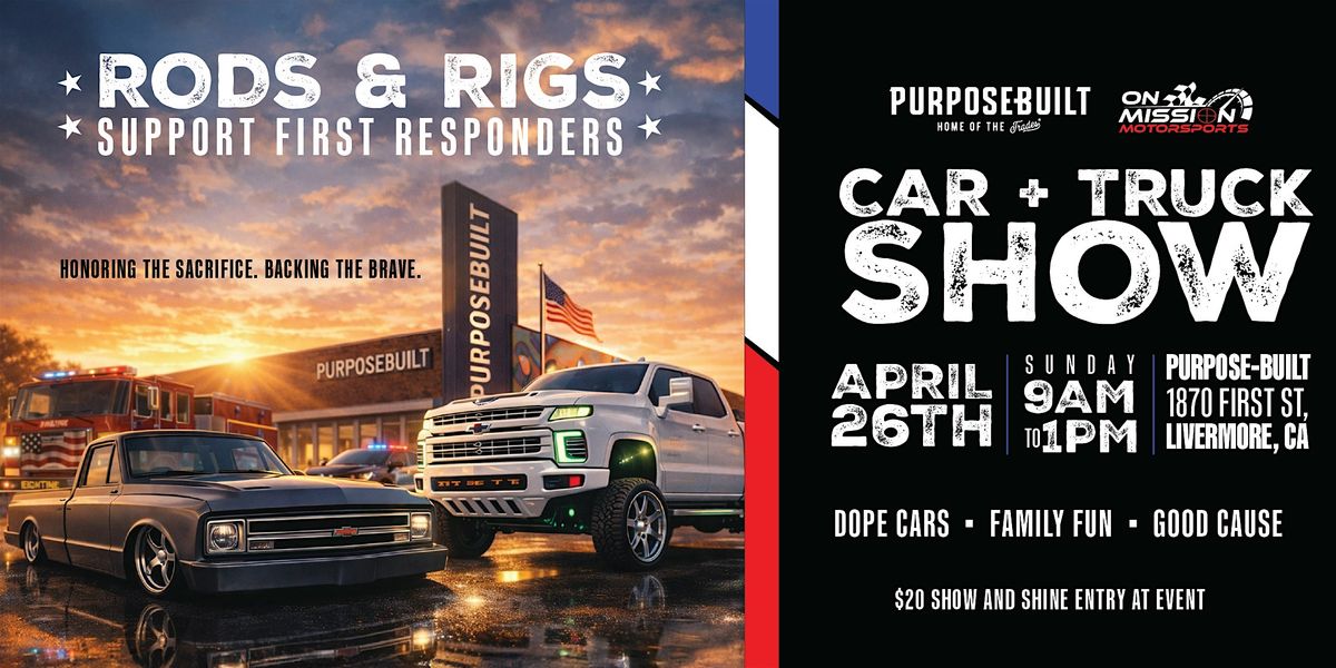 Be at Purpose-Built Oakley on April 12th for a Car & Truck Show Supporting Local First Responders.