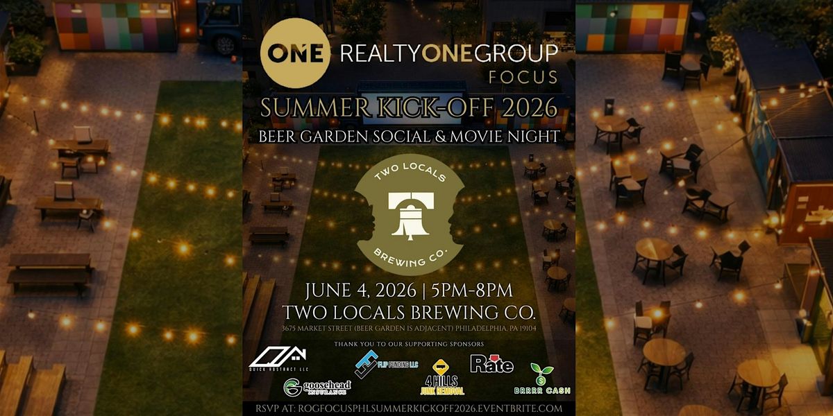 Join Realty ONE Group Focus PHL on Thursday, June 4, 2026 from 5 PM to 8 PM for Summer Kick-Off 2026, a free Beer Garden Social & Movie Night for agents and the friends and family of Realty ONE Group Focus PHL. While the venue is listed as Two Locals Brewing, the event itself will be held outdoors in the adjacent beer garden lot at uCity Square, creating the perfect setting for a relaxed summer evening in University City. Guests can expect a casual, welcoming atmosphere built around connection, community, great food, and a movie experience displayed on a LED Billboard Truck, with movie title to be announced.