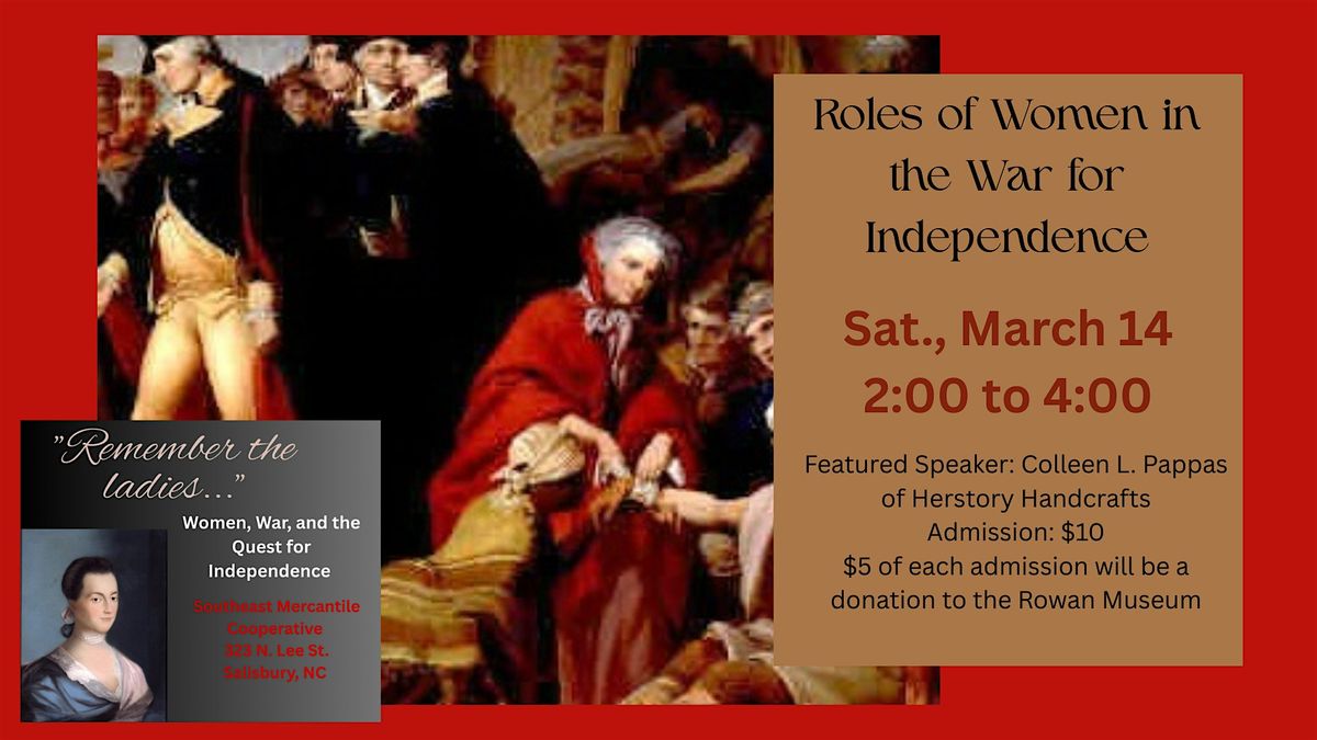 Remember the Ladies: Roles of Women in the War for Independence As we celebrate the 250th anniversary of the founding of our nation this year, we unfortunately find that women are often overlooked in history books. “Well-behaved women seldom make history” is a well=known quote from Laurel Thatcher Ulrich that underlines this issue. This year, the ladies of Southeast Mercantile want to celebrate women and their lives during the revolution. This second of a series of presentations will focus on how the war affected women in the Carolina's and their roles during our War of Independence.