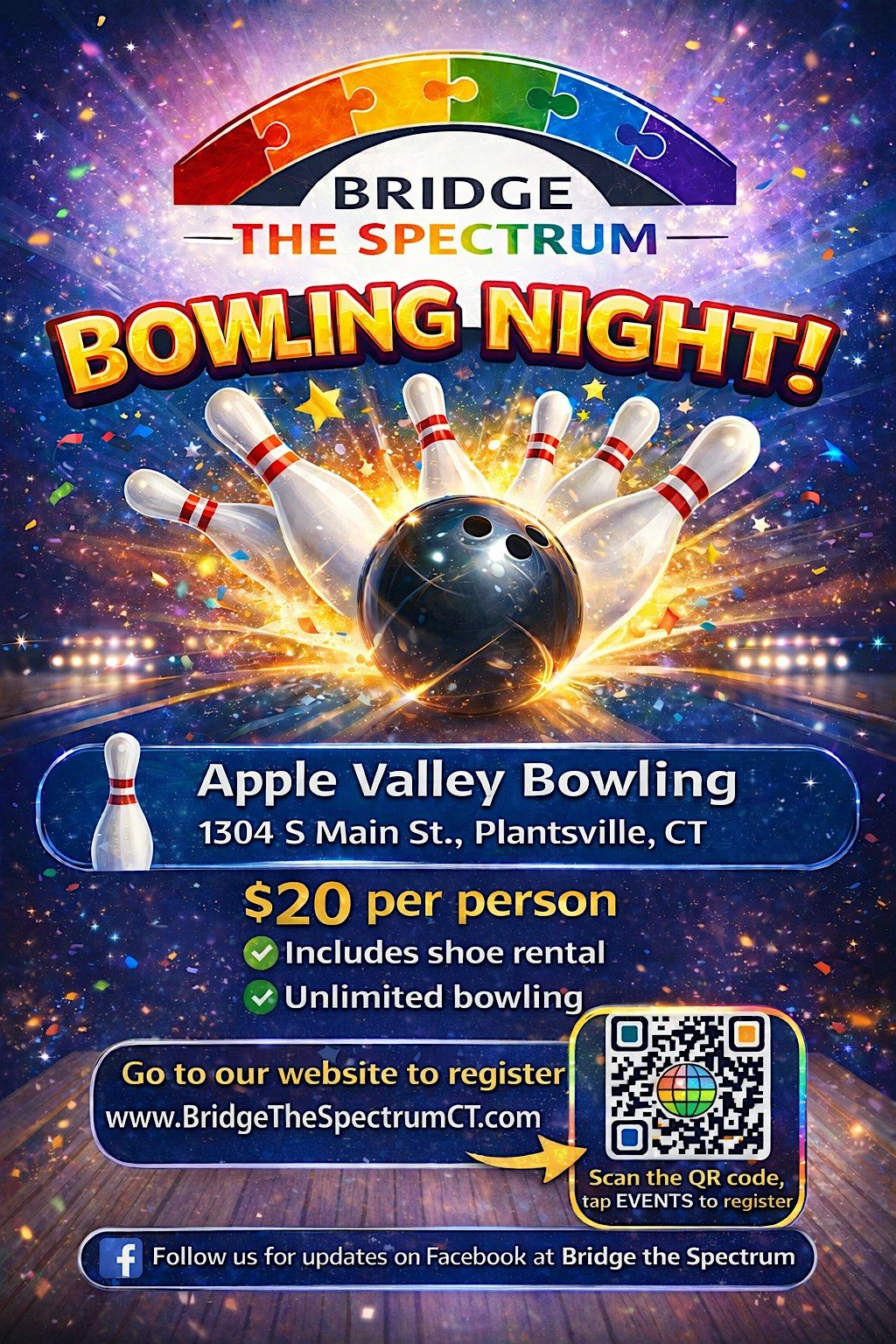 Join Bridge the Spectrum for a fun, relaxed Bowling Night for autistic adults (18+) at Apple Valley Bowling! This event is designed to be inclusive, low-pressure, and social — whether you love bowling or just enjoy being around others in a comfortable environment.