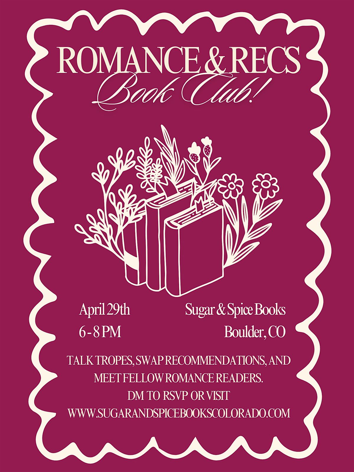Bring whatever book you're currently reading—or one you recently loved—and spend the evening chatting with fellow readers.This relaxed, social book club is all about sharing recommendations, discovering new titles, and connecting with other romance lovers in the community.