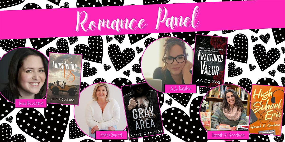 Join us for a Romance Panel featuring Jenn Bouchard, Kade Charest, A.A. DaSilva, and Hannah R. Goodman.