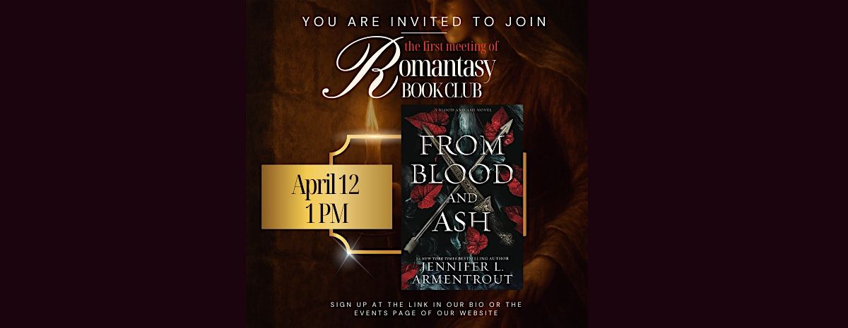#RomantasyBookClub #FromBloodAndAsh #FBAA #Romantasy #BookClub #JenniferLArmentrout #BookstoreEvents #RomantasyReads #PophyAndHawke #BookishCommunity