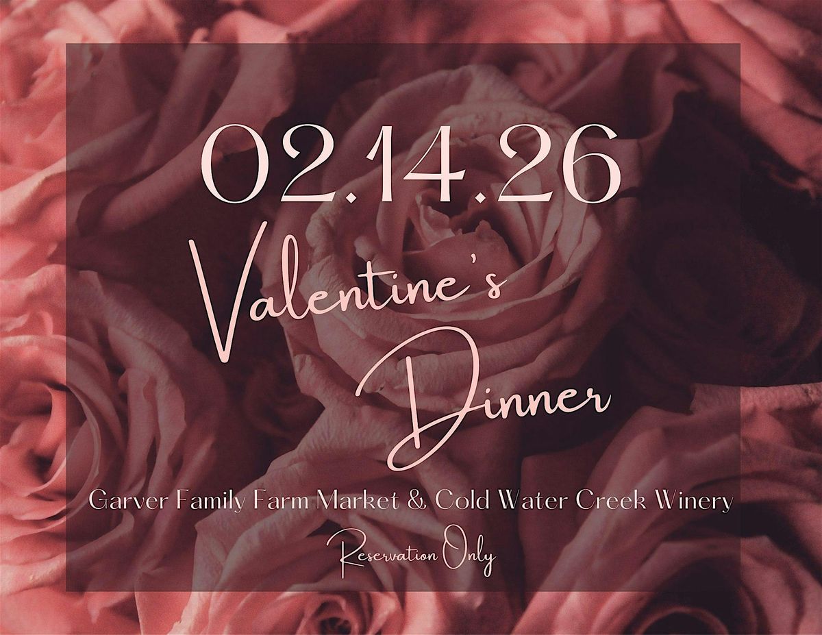 Explore chef-curated flavors through this unique dinning experience. Priced $150 per couple- this dinner includes a starter, two salads, two entrees with sides, a dessert, complimentary beverage service and a bottle of our very own Cold Water Creek wine! The bar will be open for any additional drinks, including Valentine's Day cocktails! This is the perfect getaway spot for a quiet, romantic, night out!