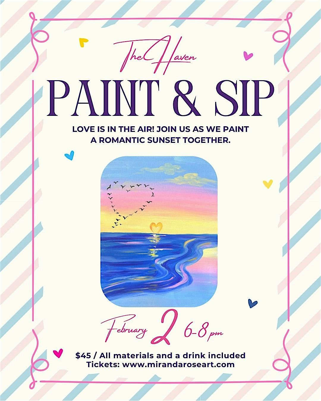Come join us for a fun and creative evening at The Haven Pizzeria on February 18, 2026 at 6:00 PM. Get ready to unleash your inner artist while sipping on your favorite drinks. It's the perfect way to celebrate the Valentine's Day festivities with your special someone or friends. See you there!