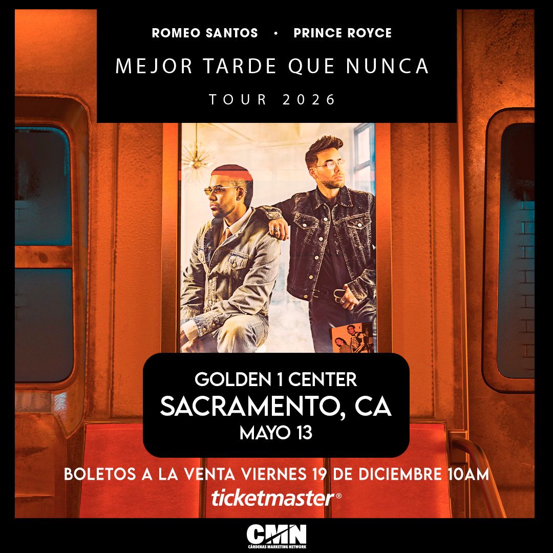 Romeo Santos at Golden 1 Center🎉 Welcome to Romeo Santos & Prince Royce Sacramento Tickets, where dreams come alive and possibilities are endless! 🏛️ Join us at Golden 1 Center in the heart of Sacramento, CA for an event that defies expectations. 📅 On May 13th, 2026 at 08:00 PM, be part of something truly extraordinary as we bring together innovation, entertainment, and pure magic. ✨ Every aspect has been carefully designed to ensure an unforgettable experience for all our guests. Whether you're seeking adventure, inspiration, or simply a break from the ordinary, this event promises to deliver beyond your wildest dreams. ✨ With tickets available at 77.78 EUR, your journey awaits. 🎊 Prepare for a journey into the extraordinary!
