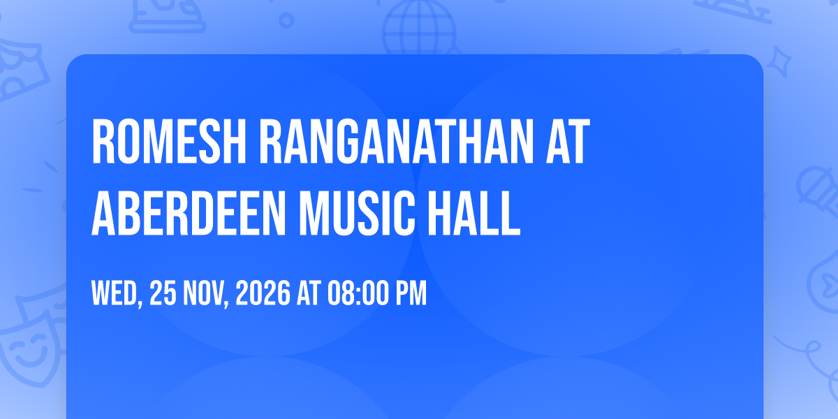 π Welcome to Romesh Ranganathan at Aberdeen Music Hall, where dreams come alive and possibilities are endless! ποΈ Join us at Aberdeen Music Hall in the heart of Aberdeen, SC for an event that defies expectations. π On November 25th, 2026 at 08:00 PM, be part of something truly extraordinary as we bring together innovation, entertainment, and pure magic. β¨ Every aspect has been carefully designed to ensure an unforgettable experience for all our guests. Whether you're seeking adventure, inspiration, or simply a break from the ordinary, this event promises to deliver beyond your wildest dreams. π Prepare for a journey into the extraordinary!