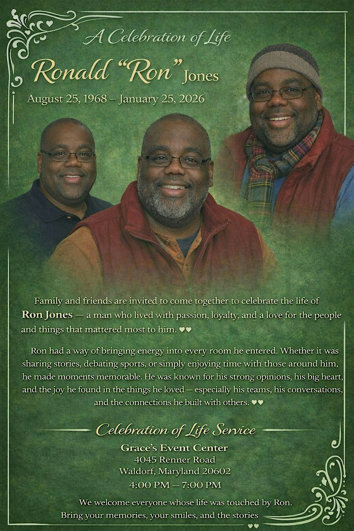 Please join us as we come together to honor and remember Ron Jones in a warm, in-person gathering filled with the people who meant the most to him. This won’t be a formal event — it will be a time to reconnect, share stories, laugh a little (because Ron would absolutely want that), and remember the moments that made him who he was.