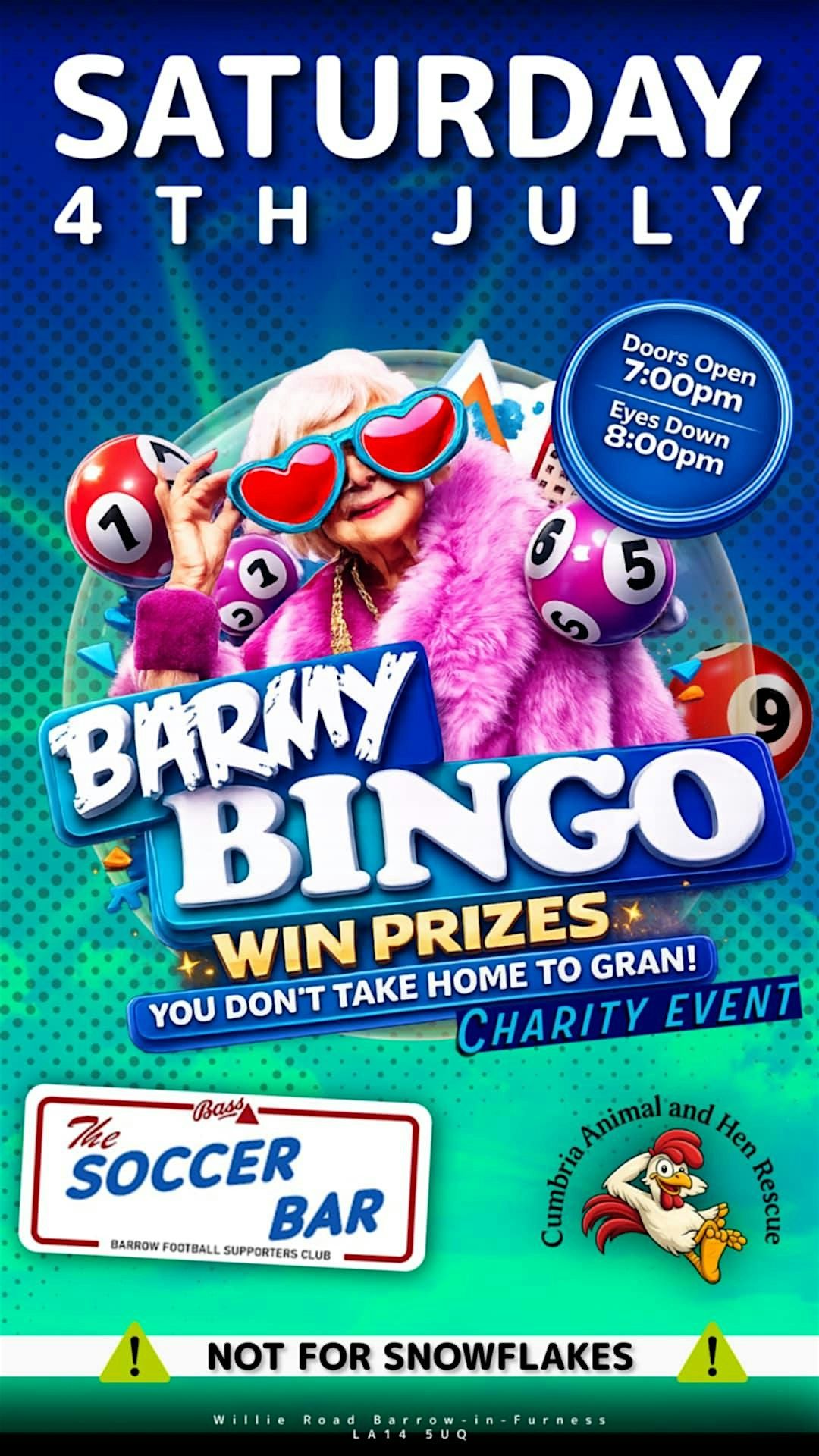The Soccer Bar, Wilkie Road, Barrow-in-Furness, United KingdomEvent Location & Nearby Stays: