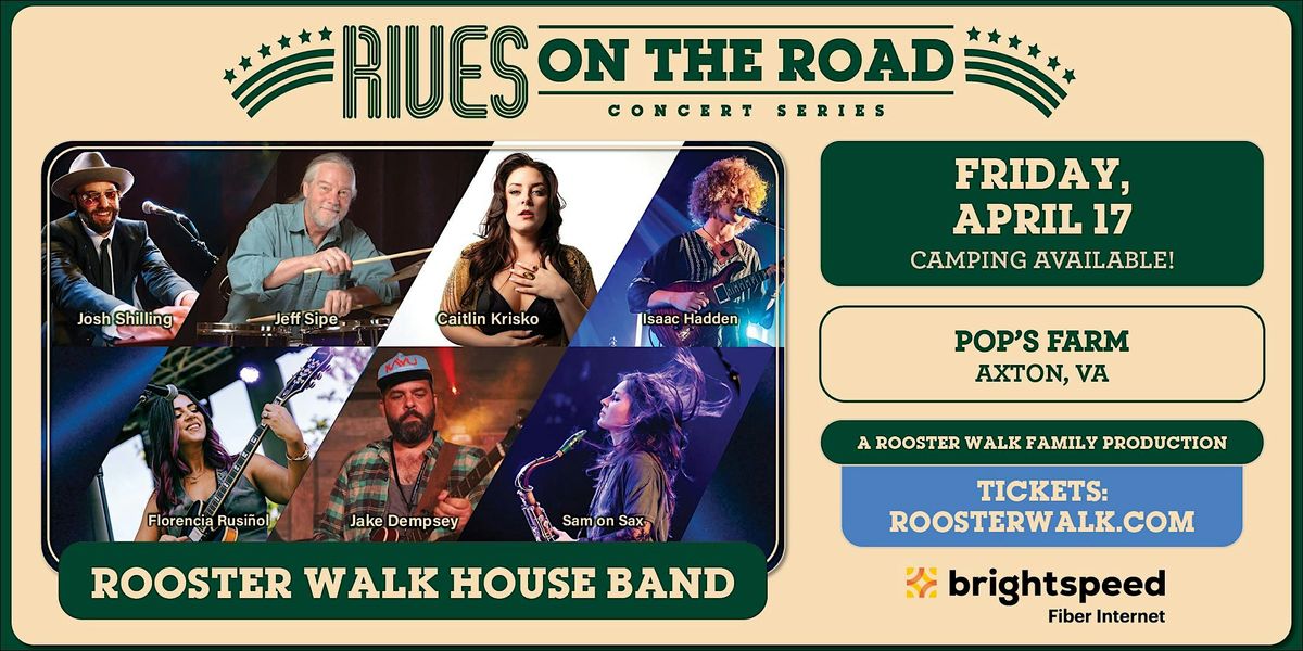 Join us for a night of incredible improv top-notch music with an all-star cast of musicians -- The Rooster Walk House Band in The Pine Grove at Pop's Farm in Martinsville, VA.